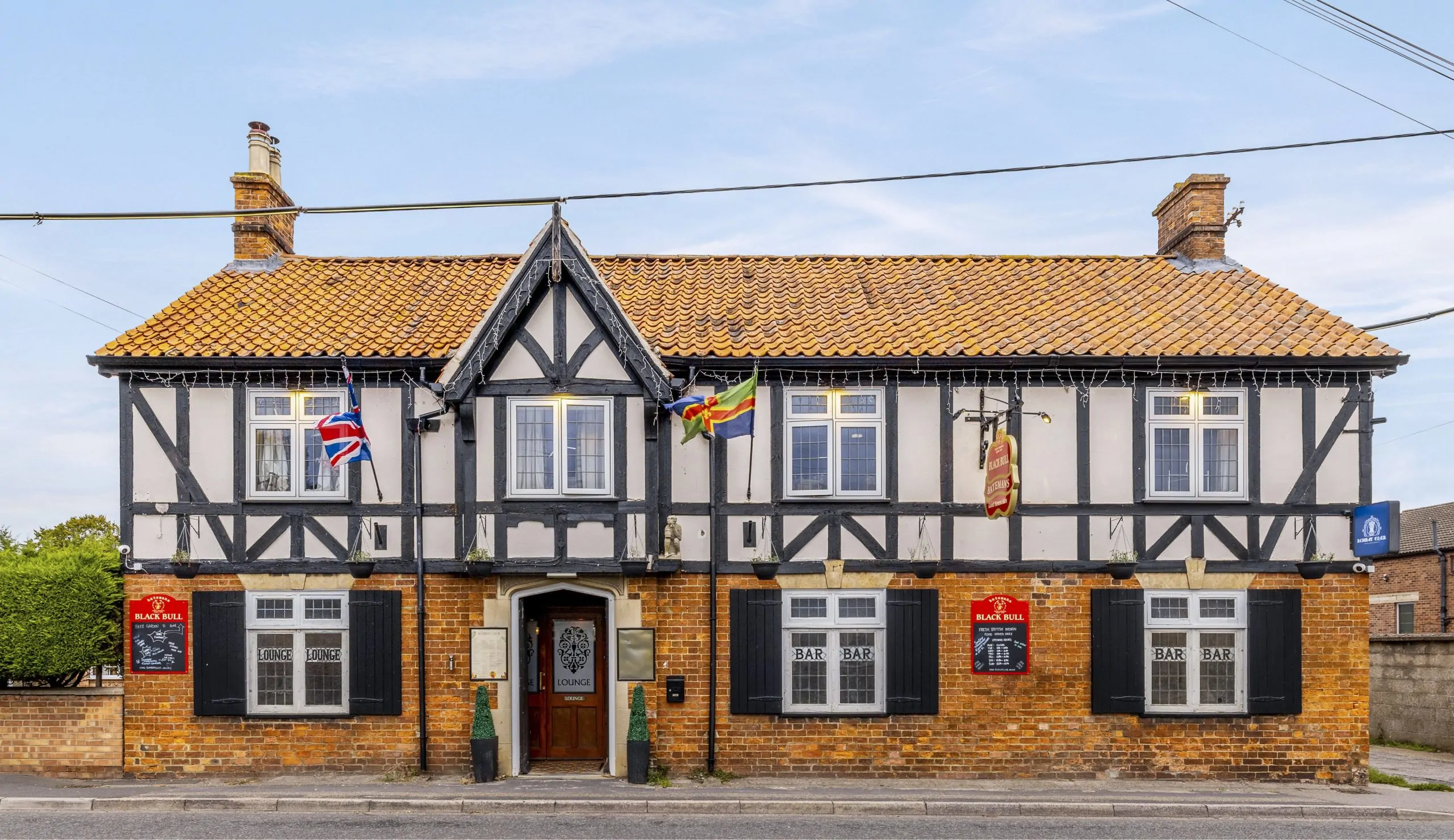 The Black Bull is an attractive, road side, mock Tudor fronted pub, located just off the centre of the picturesque, affluent and expanding village of Ruskington, 4 miles north of Sleaford and 17 miles south of Lincoln.