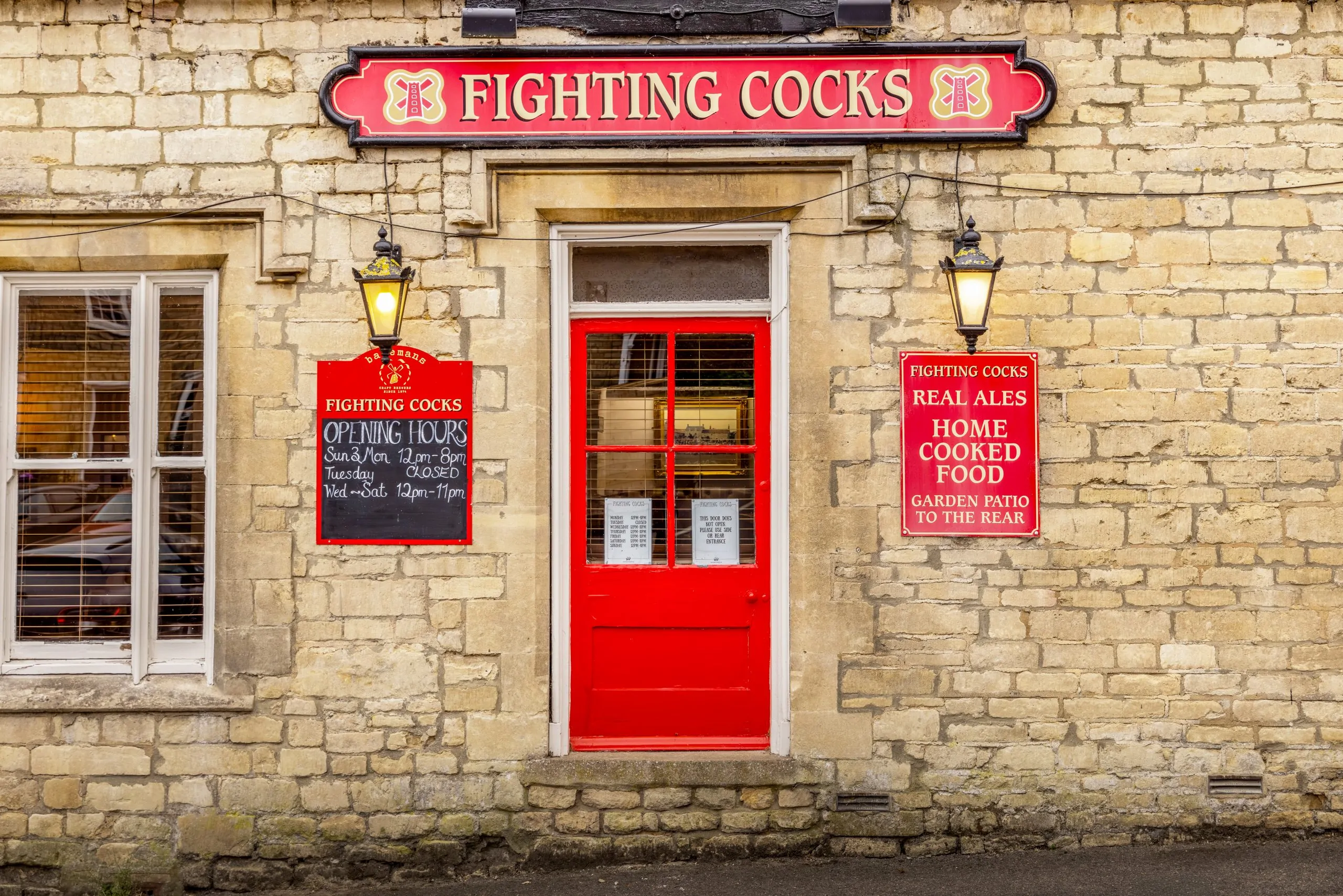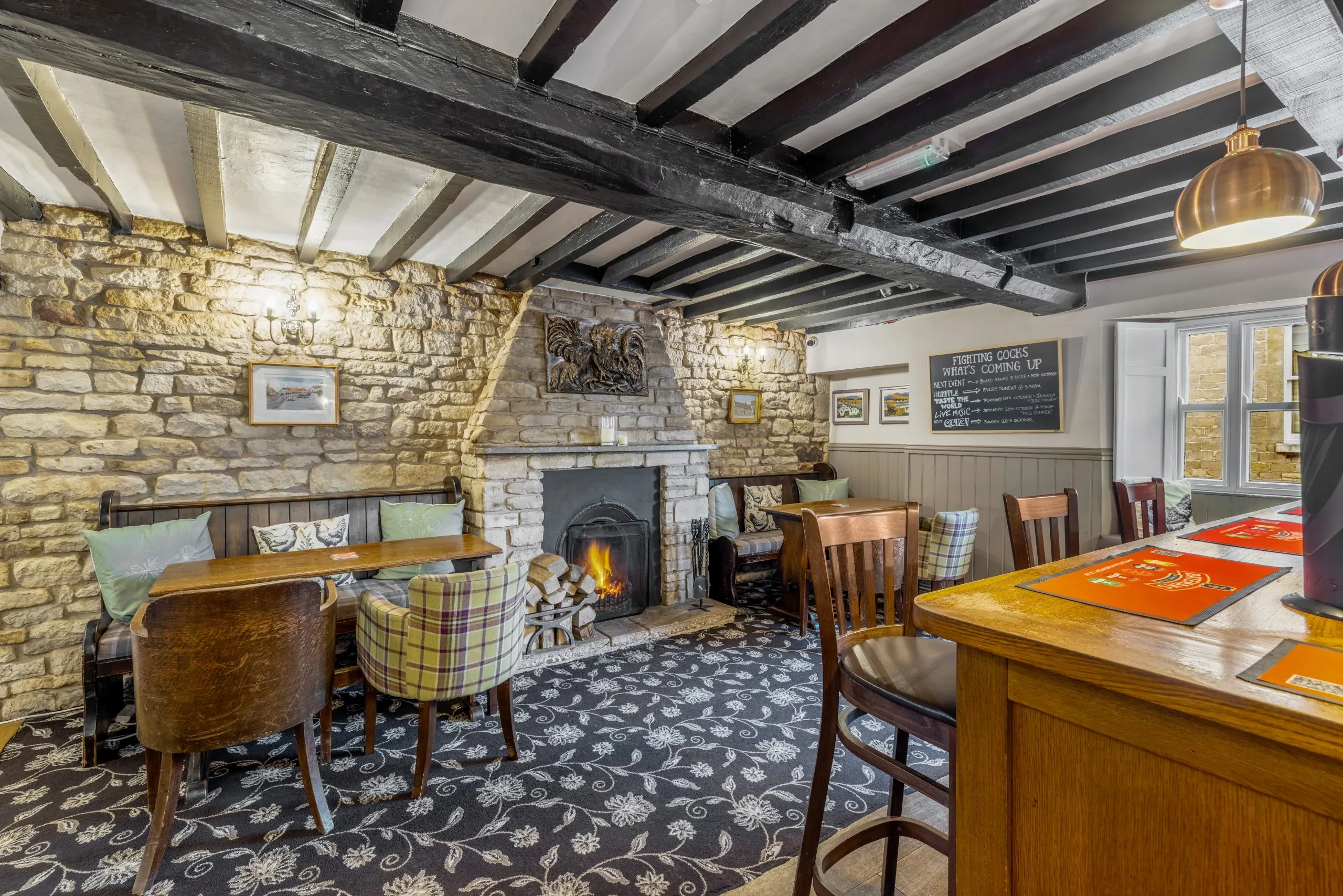 The Fighting Cocks is an attractive, traditional eighteenth century pub with plenty of character situated in the heart of Corby Glen, which is close to the A1.